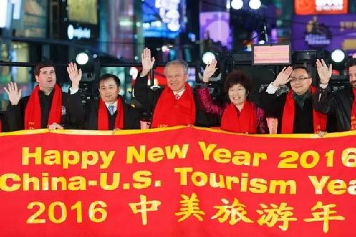 2016新年到來(lái)之際,來(lái)自世界各地的上百萬(wàn)游客歡聚美國(guó)紐約時(shí)報(bào)廣場(chǎng),慶??缒昊顒?dòng)。中國(guó)國(guó)家旅游局駐紐約旅游辦事處在時(shí)報(bào)廣場(chǎng)舉辦了2016“中美旅游年”主題宣傳專場(chǎng)活動(dòng)。“暢游江蘇 感受美好”旅游宣傳片也在紐約時(shí)報(bào)廣場(chǎng)同步滾動(dòng)播放,吸引了眾多游客特別關(guān)注。