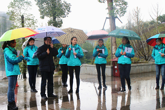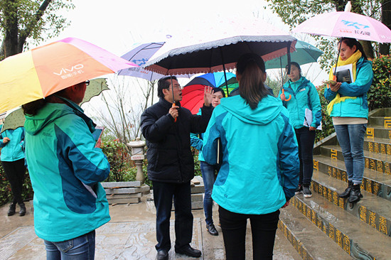 12月15日,院長(zhǎng)李永明一行到長(zhǎng)壽區(qū)菩提山風(fēng)景區(qū),對(duì)景區(qū)導(dǎo)游進(jìn)行《中華長(zhǎng)壽寶典導(dǎo)游詞》的專題培訓(xùn)。當(dāng)天氣溫驟降,李院長(zhǎng)帶領(lǐng)十多名導(dǎo)游,冒雨迎風(fēng),從山腳景區(qū)大門起步一路拾級(jí)而上直達(dá)山頂,用兩個(gè)多小時(shí)時(shí)間,比照一個(gè)個(gè)景點(diǎn)及相關(guān)導(dǎo)游詞,考察導(dǎo)游們對(duì)導(dǎo)游詞熟悉領(lǐng)會(huì)、把握講解情況,并多次模擬示范,深入淺出講解,并根據(jù)景點(diǎn)實(shí)際添加新鮮內(nèi)容。導(dǎo)游們學(xué)習(xí)非常用心,一致評(píng)價(jià)李院長(zhǎng)的導(dǎo)游詞寫得有文采,講得更生動(dòng),她們熟悉導(dǎo)游詞的過程不僅僅是為了工作,更是學(xué)習(xí)中華文明、了解重慶和長(zhǎng)壽地脈文脈與歷史人文、豐富知識(shí)和人生的寶貴機(jī)會(huì)。