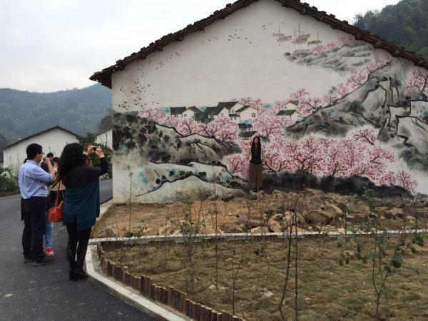今年3月,大冶市舉辦桃花節(jié),沼山鎮(zhèn)桃花村的墻繪驚艷亮相,墻繪以桃花為主題,配合相見的小屋、崇山峻嶺、山里的油菜花,營造與實景相呼應的氣氛。一個普通的豬欄經(jīng)過整體繪畫,儼然變成了一個藝術品。朵朵殷紅的桃花散落在村子里亦真亦幻,使這個寧靜的小村落增添了無限的美感。華中農(nóng)業(yè)大學耕讀公社的田老師組織親子游來到桃花村,她說,我們當時以為是老百姓自己畫的,還在想太有意思了。要是多一些村子都畫就好了。今年5月份,麻城市舉辦杜鵑花節(jié),當時熊家鋪旅游小鎮(zhèn)已經(jīng)經(jīng)過整體立面改造,古樸建筑風格搭配清新的杜鵑花和田園風光,的確讓人眼前一亮。